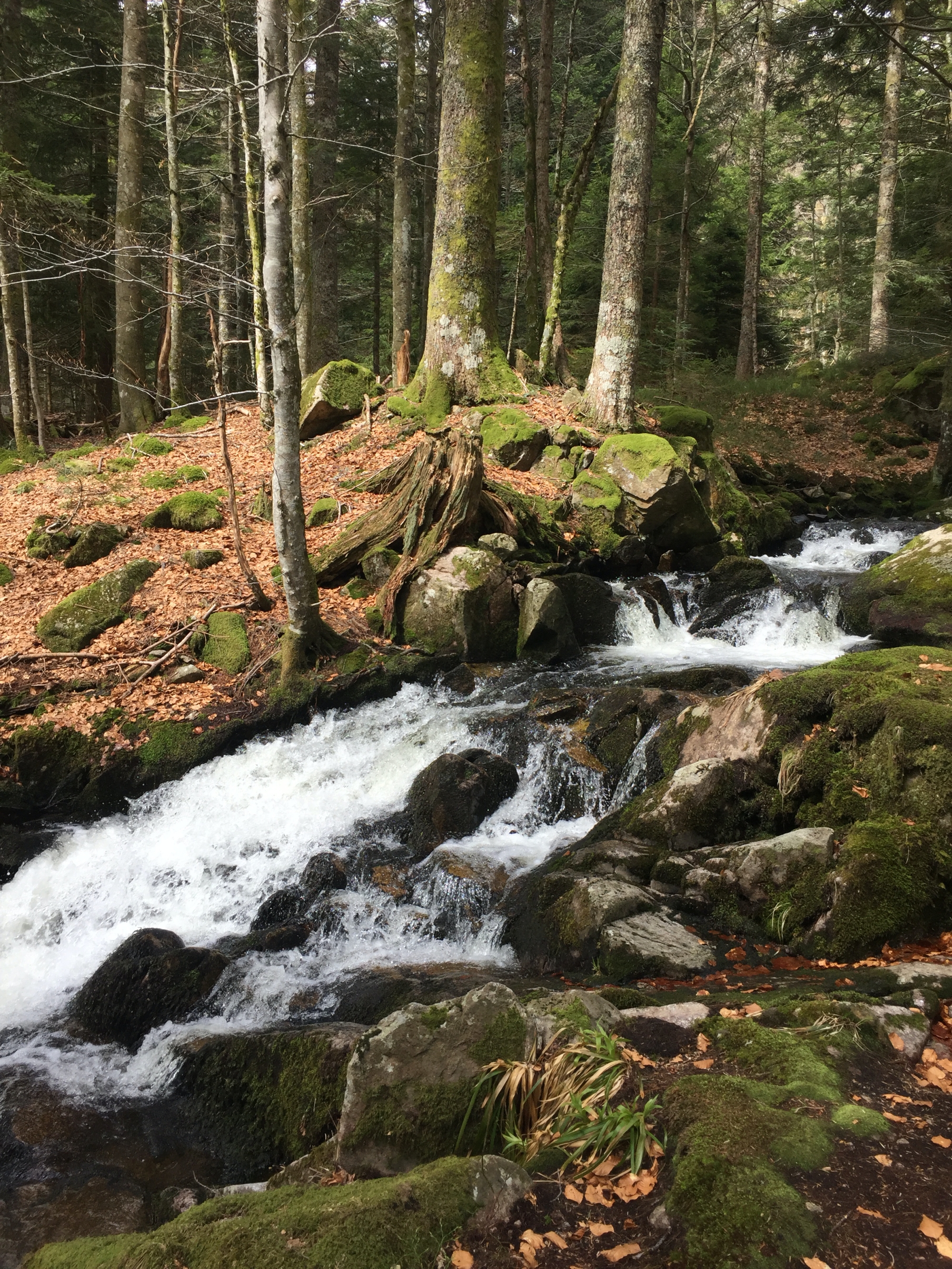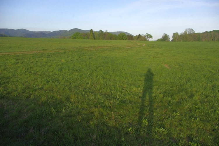 Dans les prairies en contrebas du Forts Dorsner, en limite de Giromagny, le regard se pose sur la crête des Vosges.