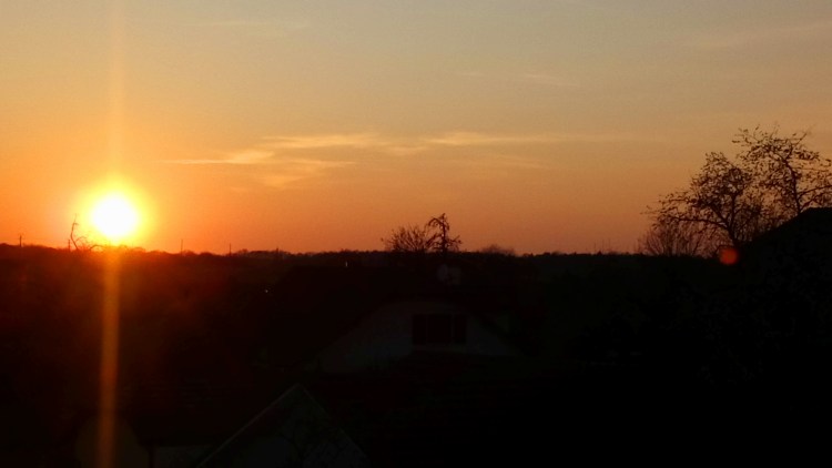Voici une photo du joli coucher de soleil de hier soir depuis la fenêtre de notre salon…. À bientôt.. Céline