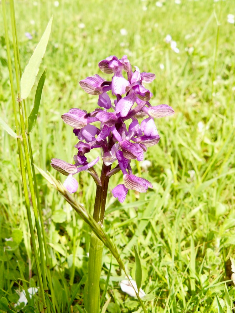 J’ai repéré ce matin en allant pendre le linge, une orchidée qui a élu domicile dans la pelouse derrière la maison. Je ne sais pas comment elle a pu arriver là, mais c’est une bonne surprise de découvrir une plante sauvage dans mon petit périmètre ! Ma question maintenant est de savoir si je la laisse là (mais la pelouse va être tondue), ou si j’essaie de la déplacer.