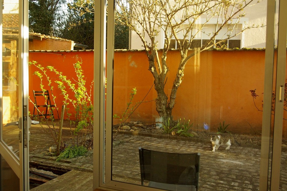 Les premiers rayons de soleil du matin qui zèbrent la terrasse, annonçant une douce journée de printemps suffisent à me contenter. Inutile de désirer davantage en ce temps de confinement. Il s’agit juste de recevoir ce que la nature nous offre, juste derrière la fenêtre . Tout comme nos félins pour qui rien n’a changé.