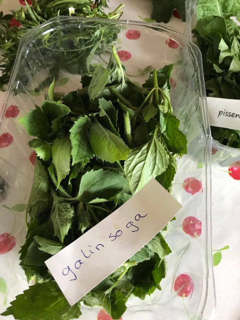 Cueillir diverses plantes sauvages : feuilles de bourrache, orties, lierre terrestre, aegopode, chénopode, feuilles de consoude, feuilles de plantain, feuilles de galinsoga, …