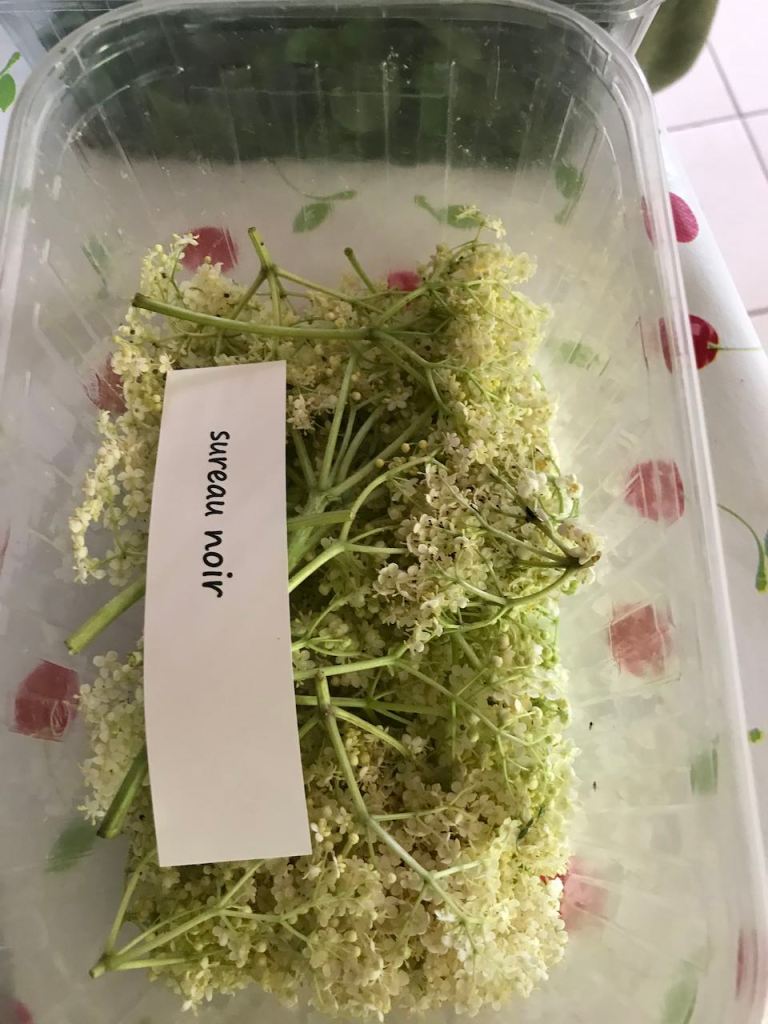 Cueillir des fleurs de sureau noir (une ombelle par personne).